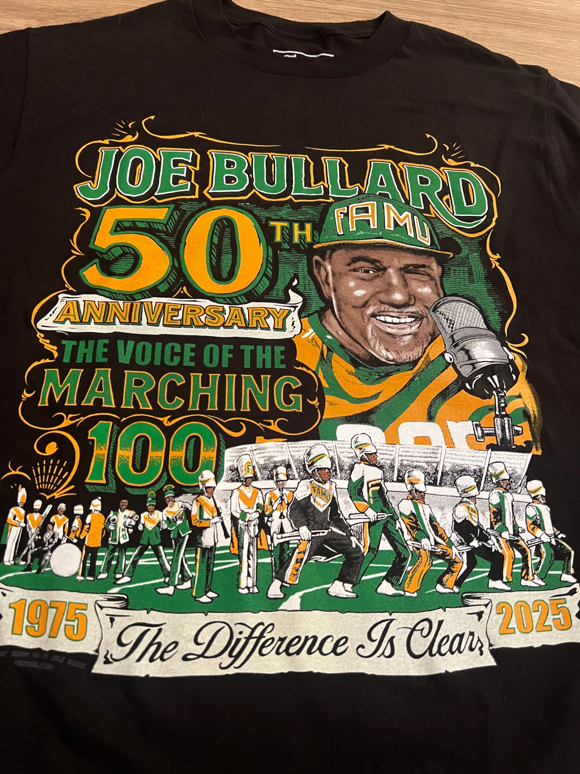 Celebrate 50 years of the legendary voice of Bragg Memorial Stadium with the official Joe Bullard 50th Anniversary T-Shirt and Sweatshirt — a tribute to a half-century of energy, passion, and iconic voice that has defined the FAMU Marching "100".
